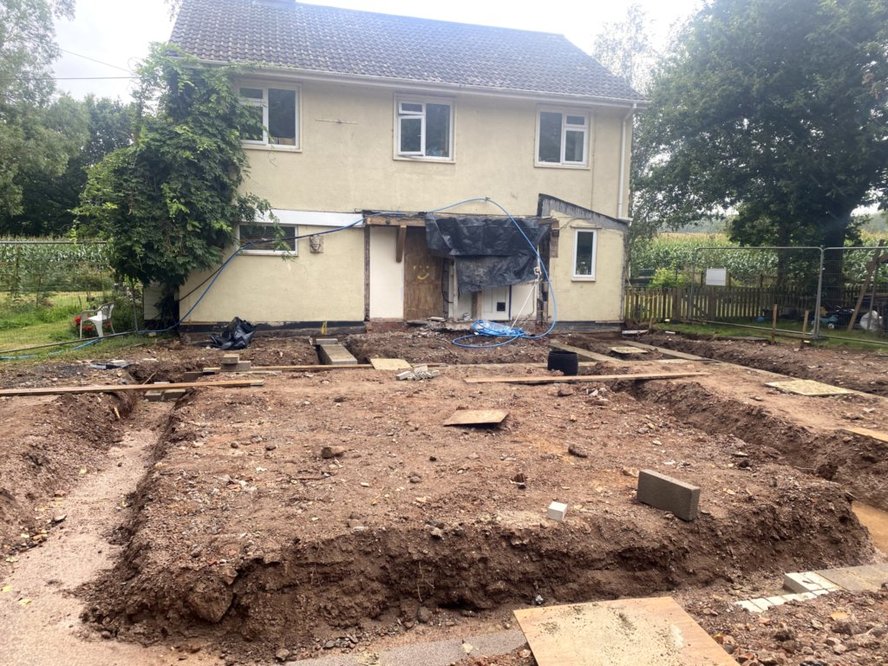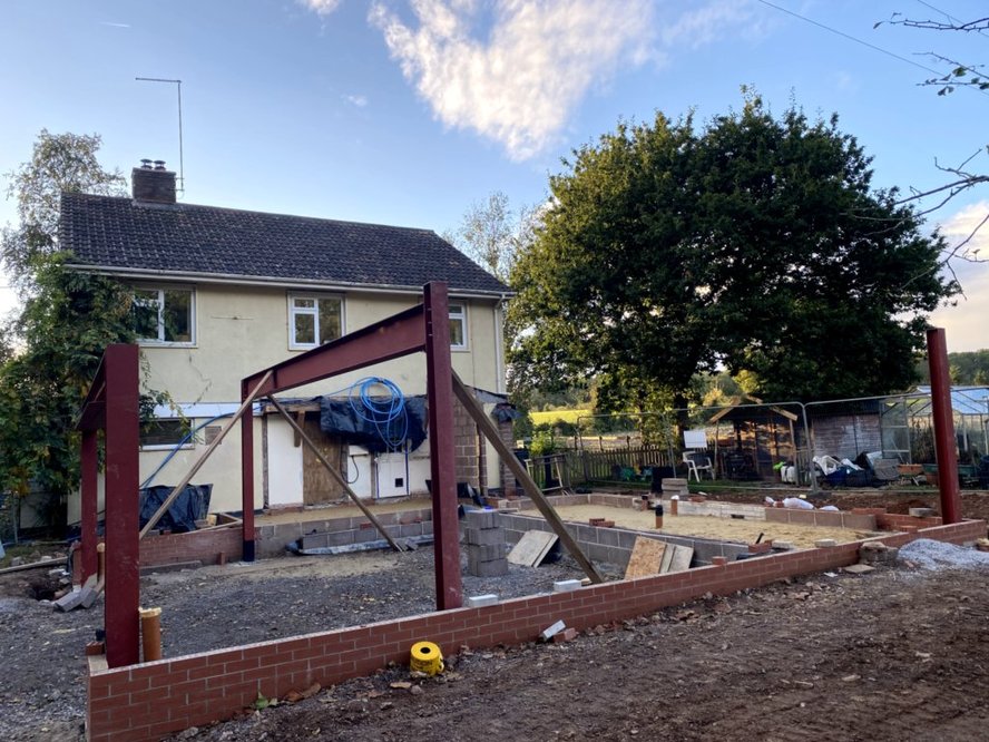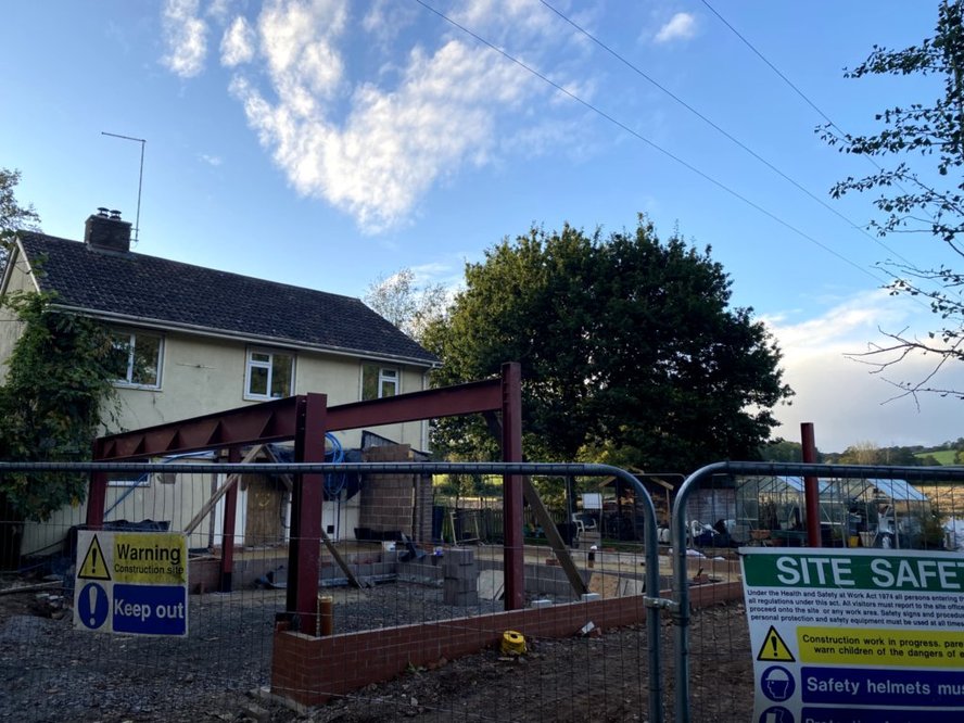 We began by demolishing the original side garage to make way for the new footprint. Once the area was cleared, our team dug new foundations & constructed the extension to architect-designed plans from Andrew Mair, including the installation of large structural steels to support the design vision.